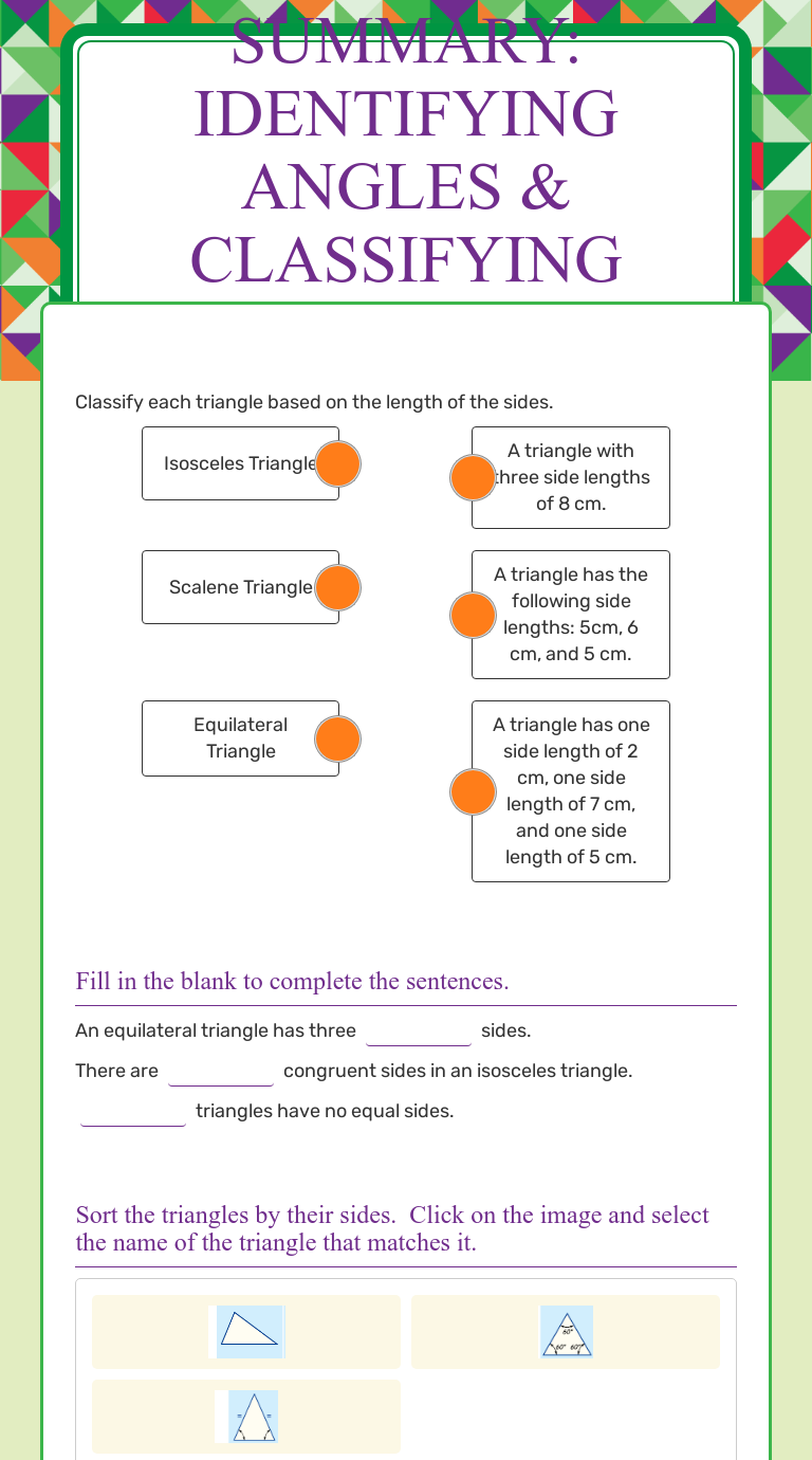 Any two angles or sides may be of. Distance formula and midpoint formula mazes geometry lessons, teaching geometry. What kind of triangle is shown? Base your decision on the actual lengths of the sides and the measures of the angles. How do we classify triangles: