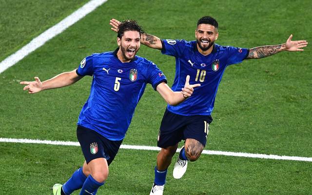 Italiens manuel locatelli (l) freut sich über seinen treffer zum 1 italien schweiz. Zwei spiele, zwei siege, kein gegentor: